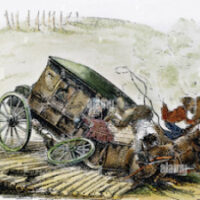 අශ්ව කරත්තය ප්රධාන ප්රවාහන ක්රමය වූ යුගයේ අමෙරිකාවේ පාරක් දිගේ ඇදෙන අශ්ව කරත්තයකි. එහි මගීන් හතරදෙනෙක් සිටිති. එක්වරම අශ්ව කරත්තය නවත්වන රථාචාර්යයා රථය තුළ සිටින මගීන්ට අනතුරු අඟවයි."මහත්වරුනි, තව ටිකක් ඉස්සරහට ගියාම නගරයක් තියනවා. ඒත් අපි අශ්...